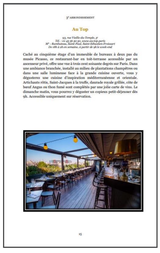 Dans “Rooftops et vues panoramiques sur Paris. Bars et restaurants en hauteur.”, Tifenn Cloarec s’adresse aux Parisiens et aux visiteurs de passage, aux curieux et aux amateurs. Pour la première fois, ce guide offre une sélection de 110 adresses entre zinc et azur. Touristiques ou plus secrets, ces bars et restaurants invitent à vivre un moment unique et inoubliable en offrant une vue imprenable et un tête-à-tête avec le ciel.